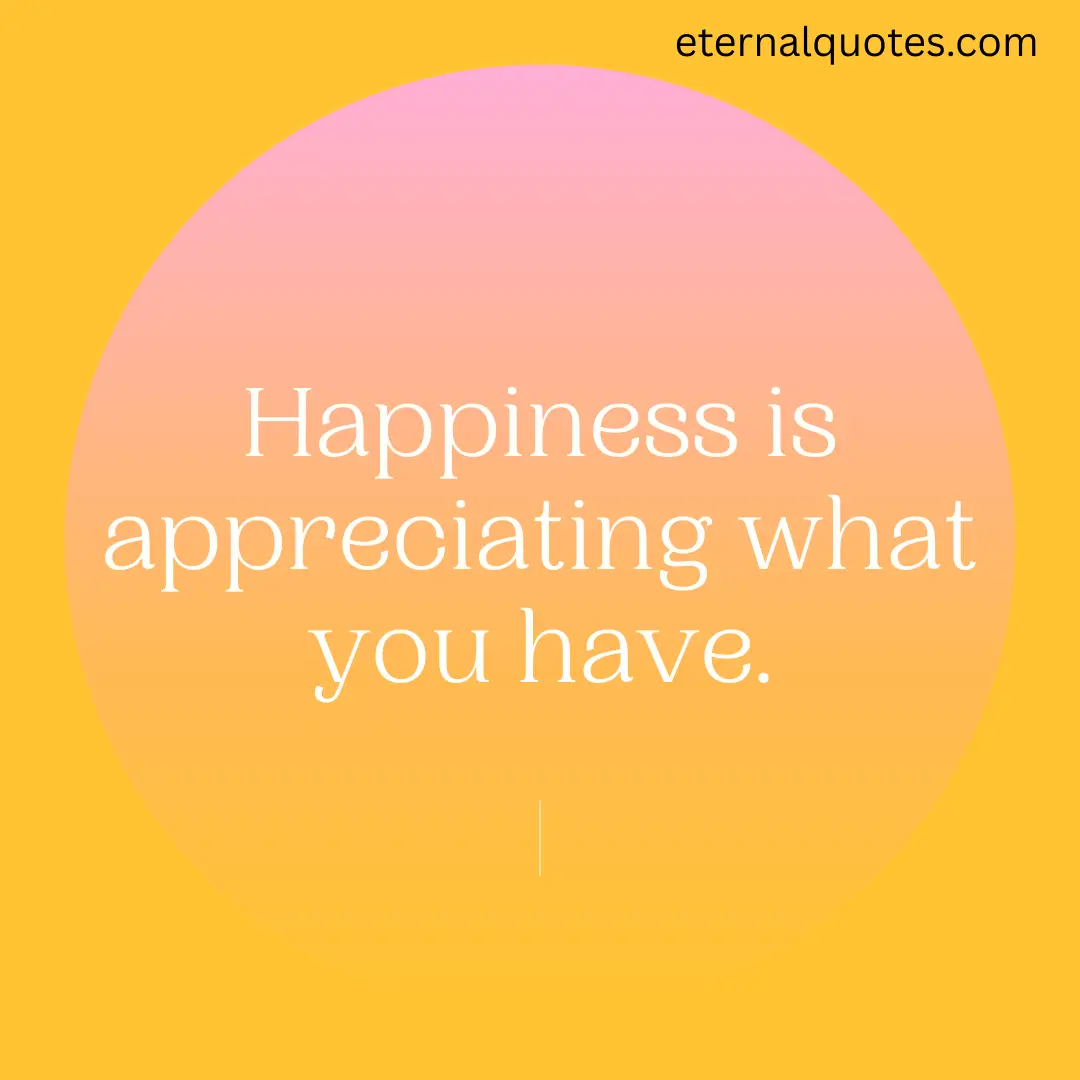 Happiness is not having what you want. It is appreciating what you have.